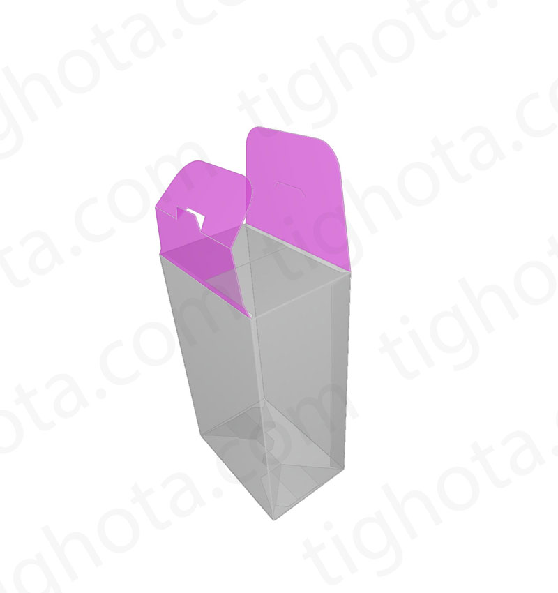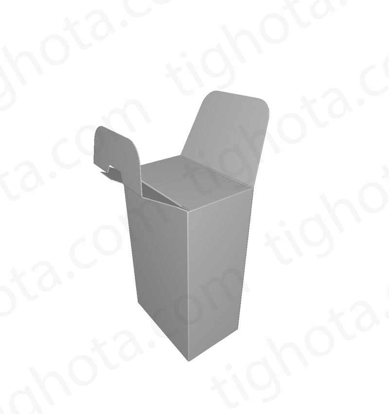 جعبه مقوایی درب دوبل از وجه بالای جعبه ، بسته شدن توسط زبانه متصل به در ، قفل زیر جعبه کراش لاک باتم، محل اتصال لب چسب EVF11241